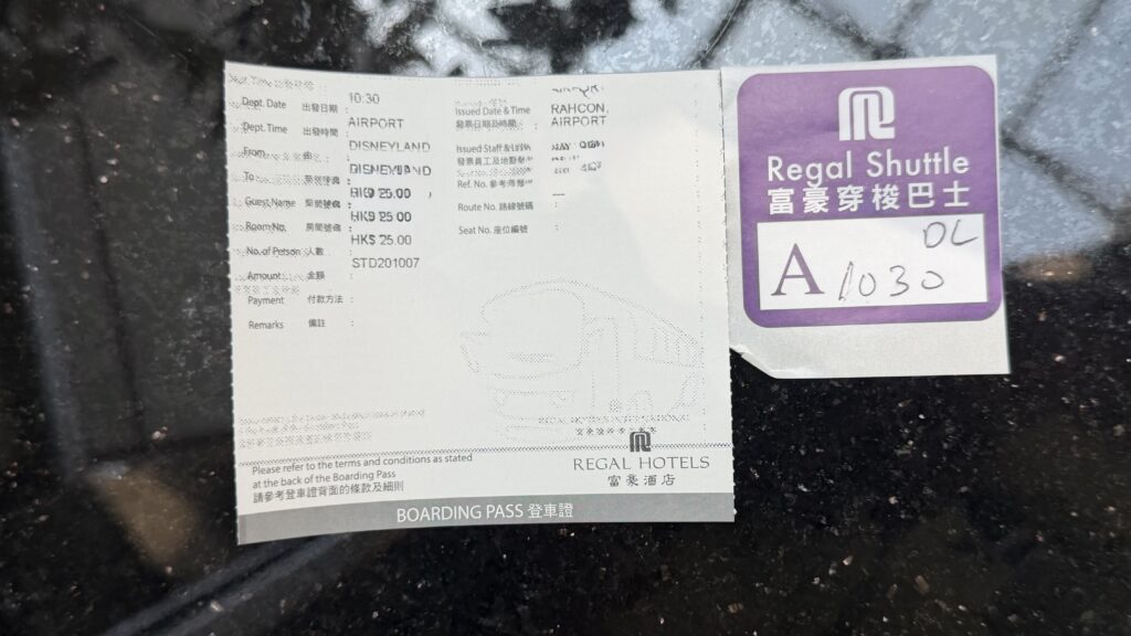 タクシーだと約3,000円以上かかるディズニーへの移動が、ホテル専用バスなら1名25HKD(約500円弱)で済みます。